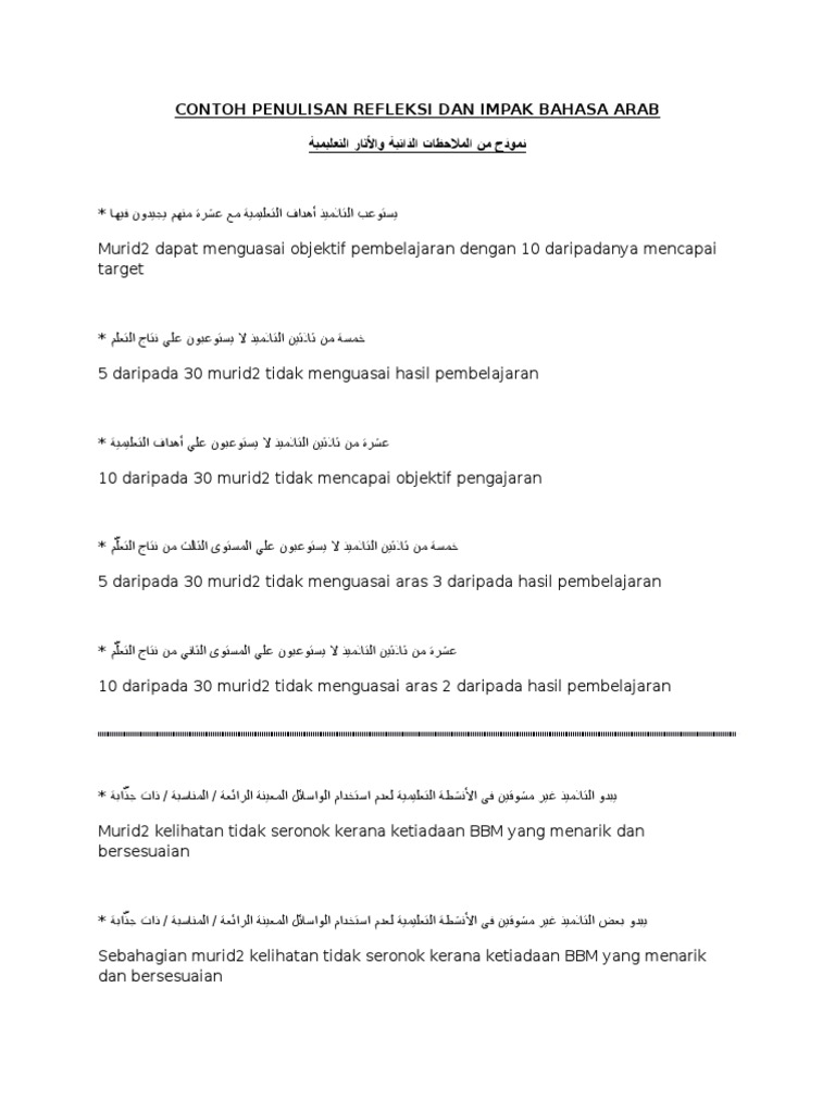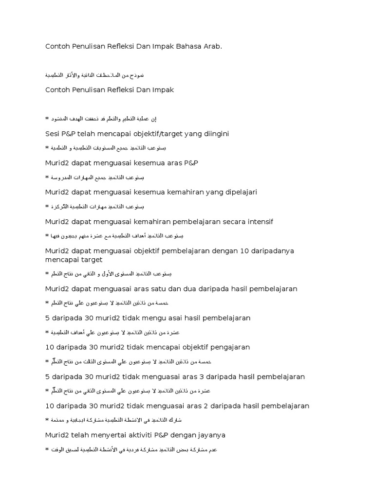 Contoh Penulisan Refleksi Dan Impak Bahasa Arab Pdf
